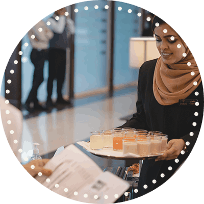 ندرك جيداً أهمية التغذية في السفر وأهمية توفير الماء والمشروبات للوقاية من الجفاف خلال رحلة الحج. برامجنا الغذائية المختلفة يقوم بإعدادها اخصائي التغذية وأمهر الطهاة والذين يقومون بتقديم تجربة طعام فنادق الخمسة نجوم مستخدمين المكونات الطازجة والصحية وأساليب الطبخ الحديثة لتقديم خيارات مختلفة وكميات سخية من الطعام والشراب على مدار الساعة تروق لكافة الاذواق وتناسب الجميع.